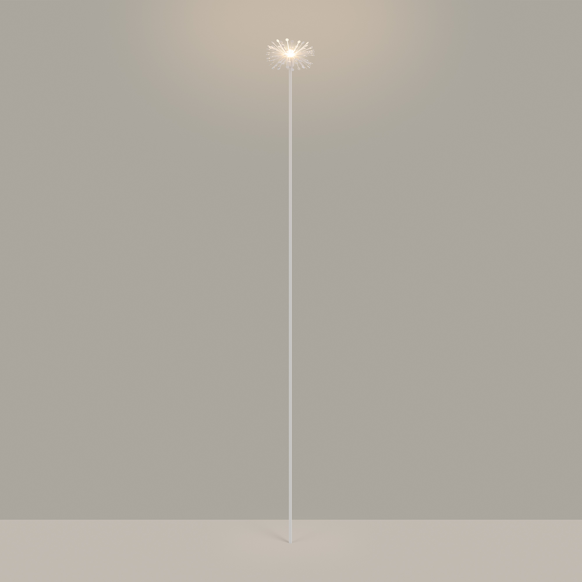 Уличный декоративный светодиодный светильник. Мощность 0.5 Вт, св. поток 13 лм, 92 лм/Вт, теплый 3000 K, CRI>80, угол излучения 24°, напряжение питания 24 В. Белый корпус из алюминия, прозрачный матовый рассеиватель из PMMA. Степень защиты IP65. Размер: диаметр 105 мм, высота 895 мм, высота углубления 155 мм. Монтаж в грунт с помощью основания пика (входит в комплект поставки). Драйвер приобретается отдельно.